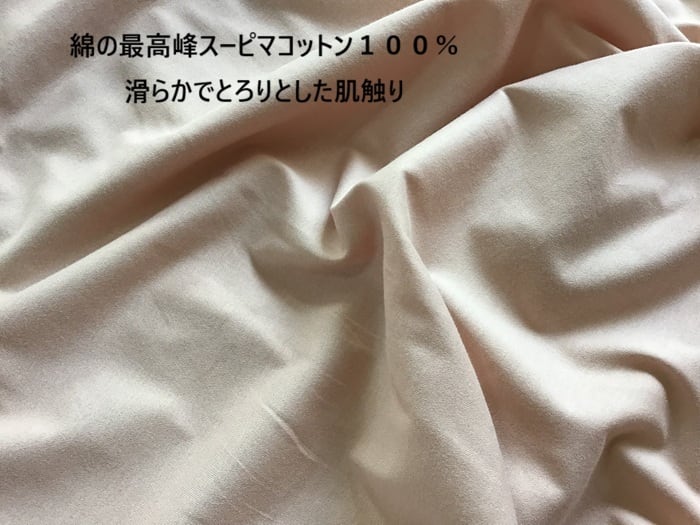綿の最高峰とされるスーピマコットンは毛羽立ちが少なく滑らかな表面感とシルクのような光沢感があり 抜群の肌触りの良さは直接肌に触れるルームウェアに最適です